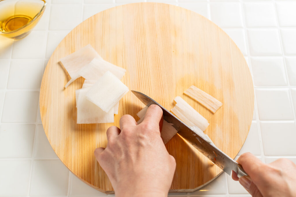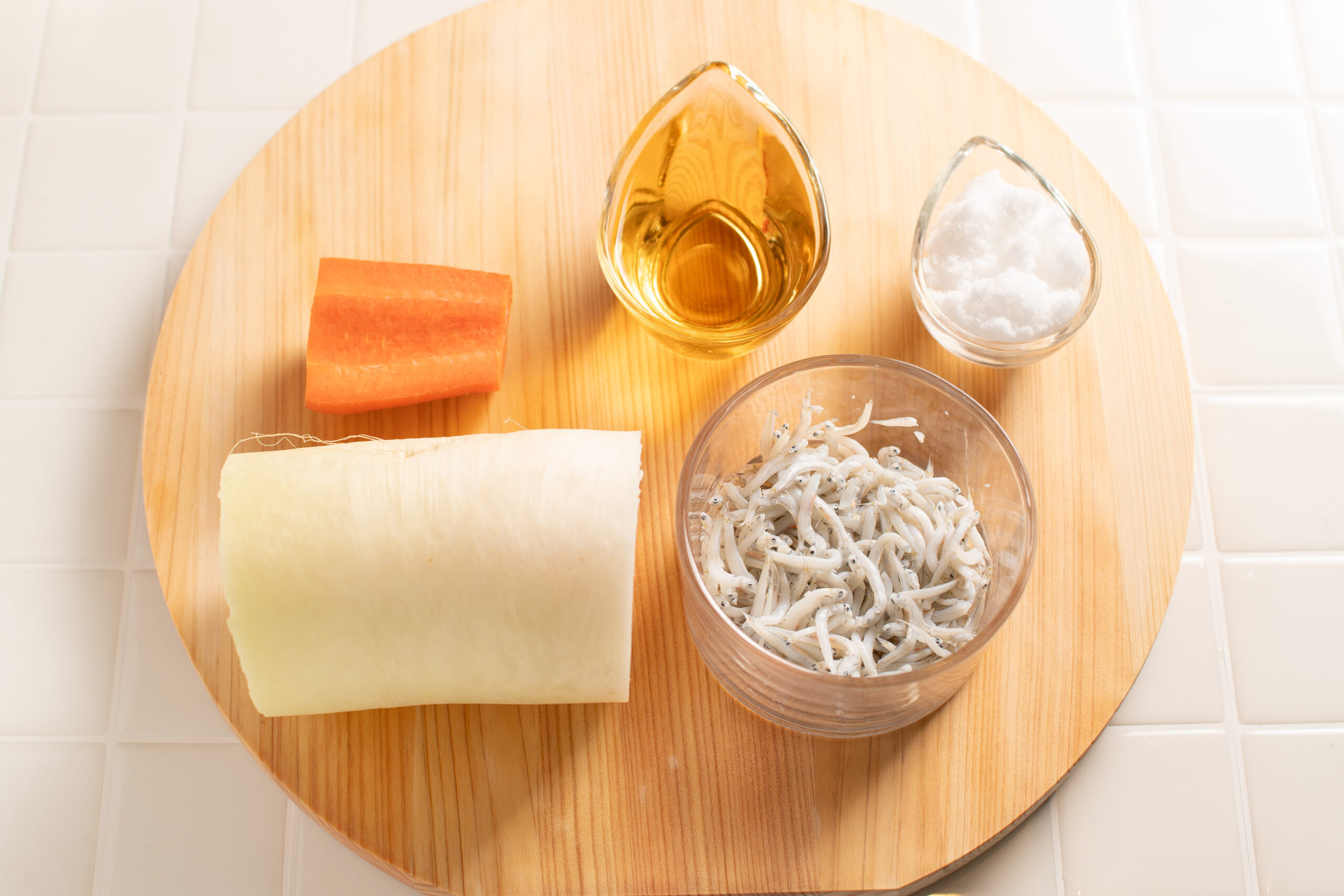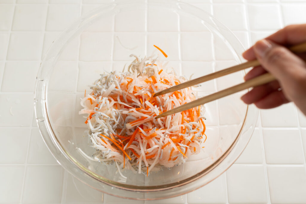① 大根とにんじんは4~5cm長さの細切りにする。