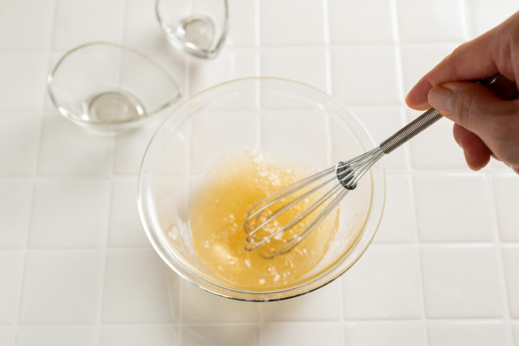 ④ 別のボウルに『合わせ酢』の材料を入れ、砂糖が溶けるまでよく混ぜる。